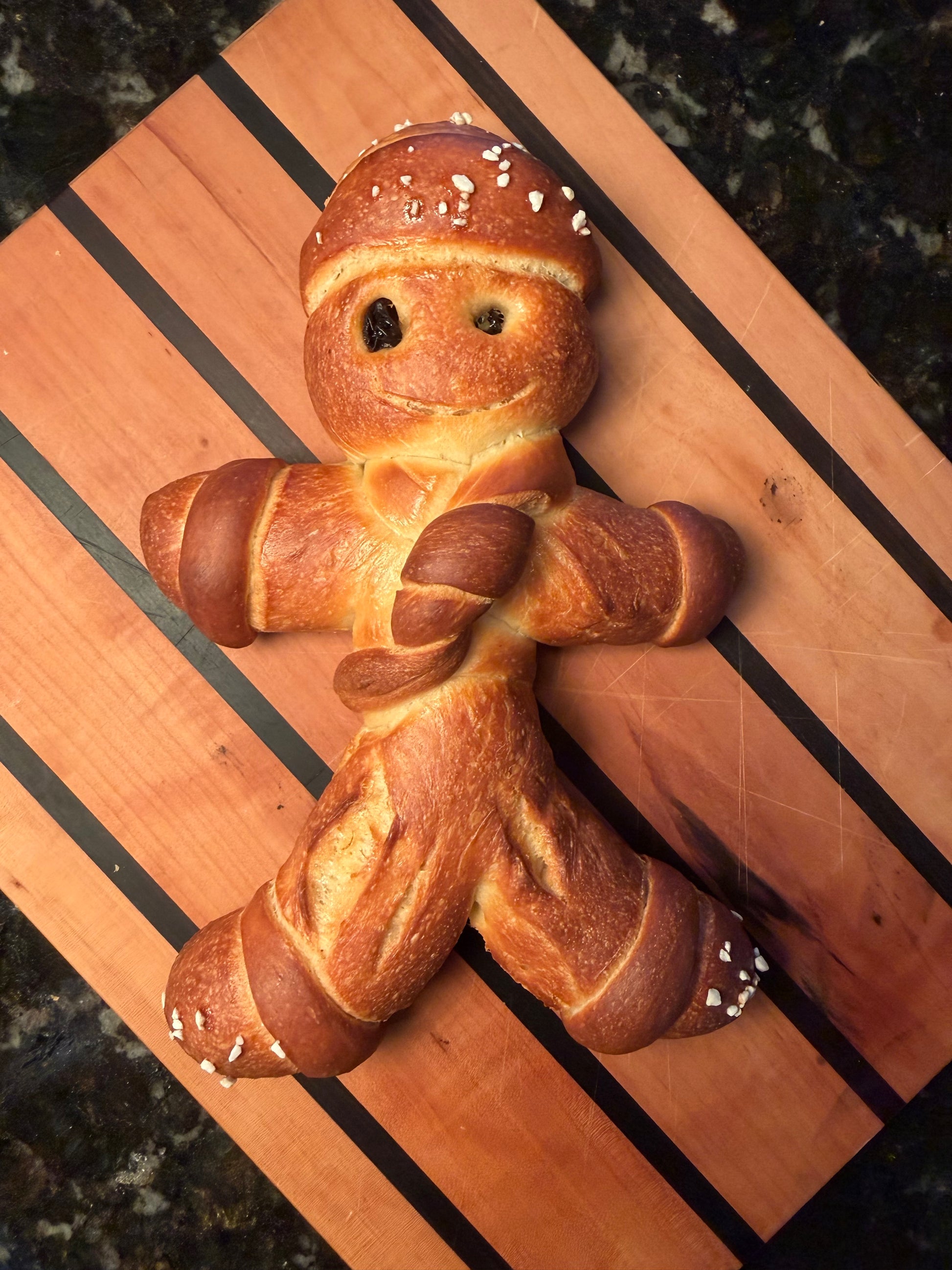This sweet little man is baked from soft, fluffy lightly sweet yeast dough — perfect for kids, field trips, or anyone who loves a cheerful bite.